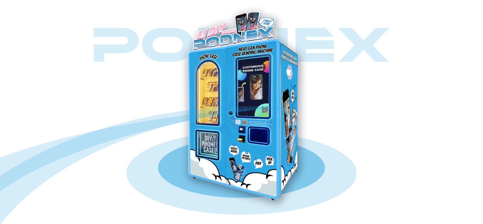 PodNEX is designed not just to print phone cases, but to enable scalable Al-powered customization retail networks